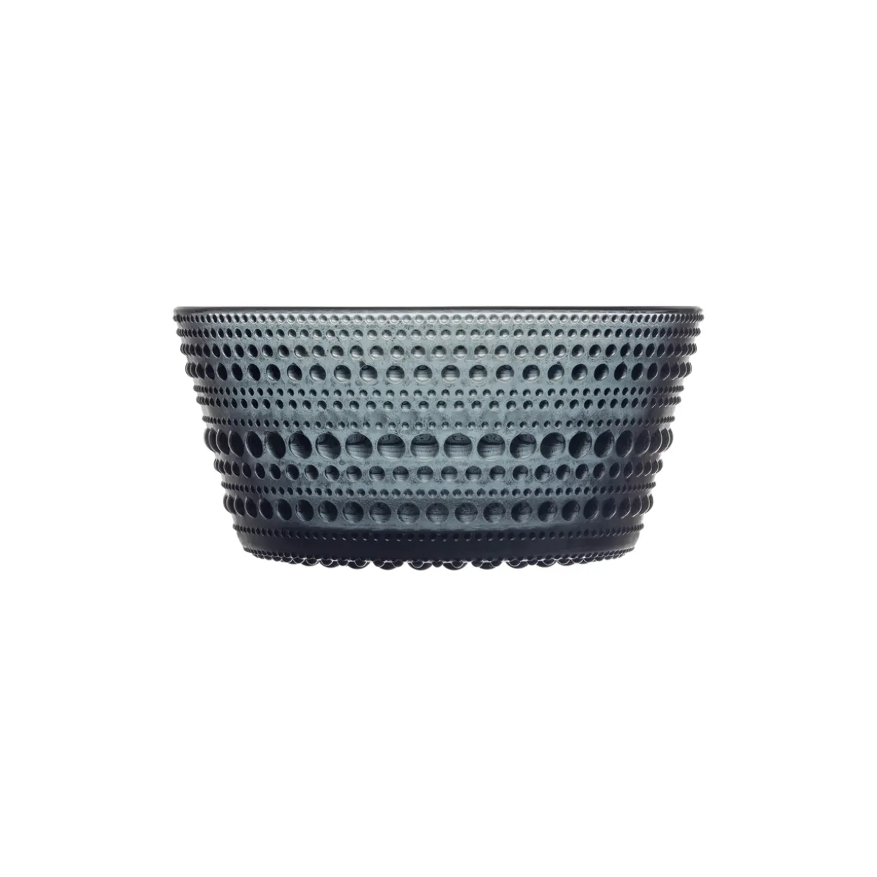 Kastehelmi-sarjan esineiden pintakoristelu muistuttaa aamuauringossa kimaltelevia kastepisaroita. Jo vuonna 1964 tuotantoon tullut sarja on Oiva Toikan innovatiivista suunnittelua. Lasin kauneus korostuu valon heijastuksissa esineiden koristelluilla pinnoilla. Rakastettuun Iittalan Kastehelmi-sarjaan kuuluu erikokoisia käytännöllisiä astioita. Herkän kaunis 23 cl Kastehelmi-kulho kestää arjen käyttöä: se sopii tarjoilukulhoksi aamupalalle, naposteltaville tai makeisille. Nyt saatavana uusi hienostunut tummanharmaa väri. Kokoa sarjaksi. Upea hää-, tupari- tai syntymäpäivälahja. Valmistettu Suomessa. Konepesun kestävä.