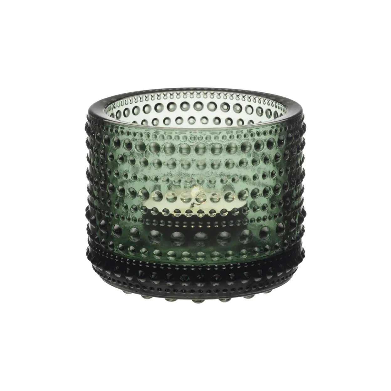 Valoa pimeneviin iltoihin, tunnelmaa erityisiin hetkiin tai kiinnostava yksityiskohta sisustukseen. Oiva Toikan suunnitteleman Kastehelmi kynttilälyhdyn eläväinen lasihelmipinta heijastaa valoa kauniisti. Havunvihreän syvä sävy antaa raikkaan ja persoonallisen säväyksen tuttuun muotoon. Erivärisiä kynttilälyhtyjä yhdistelemällä voit luoda personallisen tunnelman. Havunvihreä Kastehelmi-kynttilälyhty sopii erinomaisesti lahjaksi kaikille tunnelmointia rakastaville. Kastehelmi-sarjan tuotteet valmistetaan Iittalan lasitehtaalla Suomessa