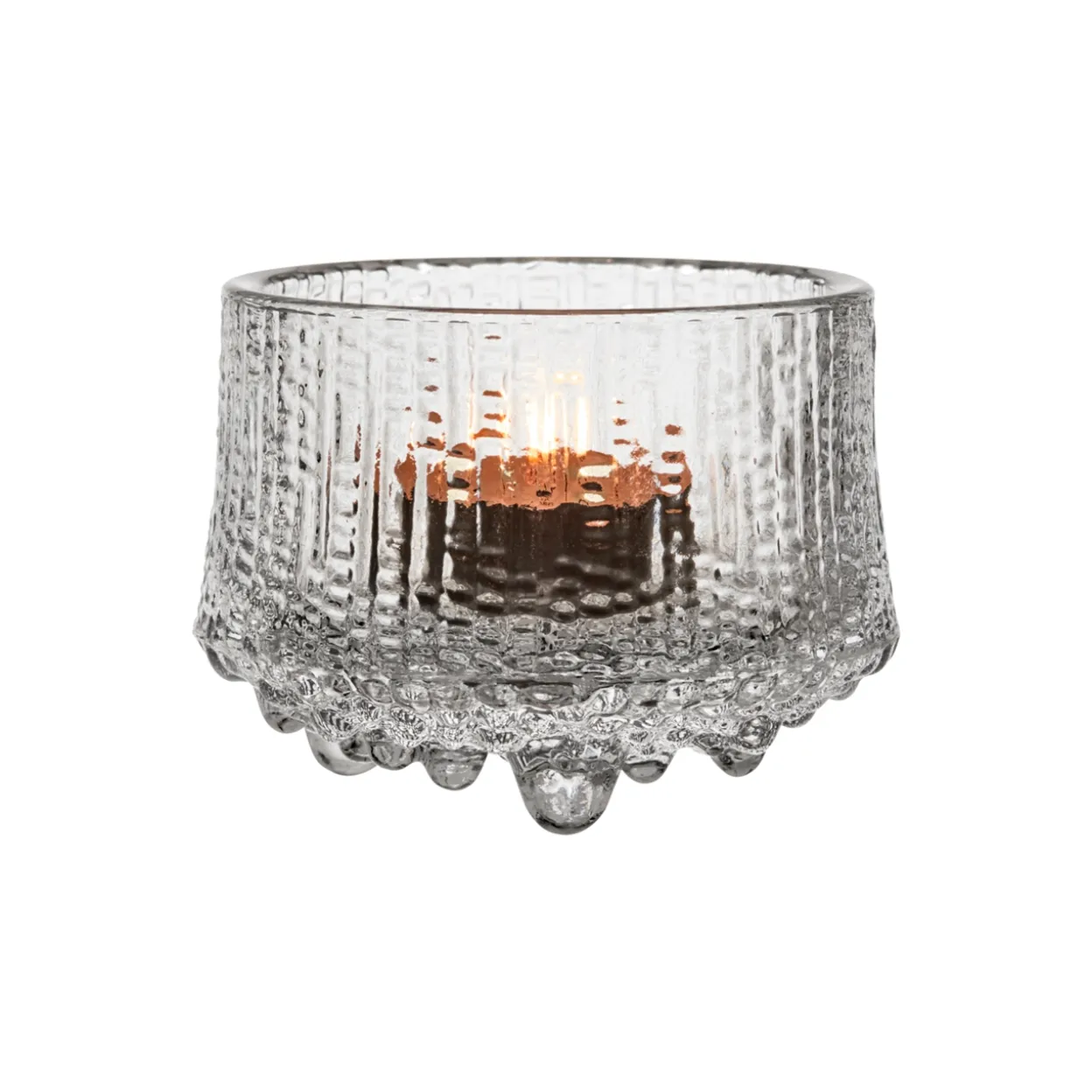 Monipuolista suunnittelijalahjakkuutta Tapio Wirkkalaa pidetään Suomen modernin taideteollisuuden edelläkävijänä. Luodessaan klassisen Ultima Thule -sarjan Wirkkala uudisti lasinpuhalluksen perinnettä. Wirkkala käytti Iittalan lasitehtaan lasinpuhaltajien kanssa lähes tuhat työtuntia uuden tekniikan kehittämiseen. Näin saatiin aikaan lasia, jonka pintarakenne jäljittelee muotoilijaa inspiroinutta sulavaa jäätä ja Lapin lumihankia. Ultima Thule -lasistossa on pyöristetty pohja, ja lasin kolme jalkaa näyttävät sulavalta jäältä. Ultima Thule -sarja tuo sisustukseen sävyjä arktisesta luonnosta. Ultima Thule -kynttilälyhdyn kirkas lasi säteilee huoneeseen pehmeää valoa ja lämmintä tunnelmaa. Näyttävä sisustusesine yksinään tai ryhmänä. Täydellinen lahja.