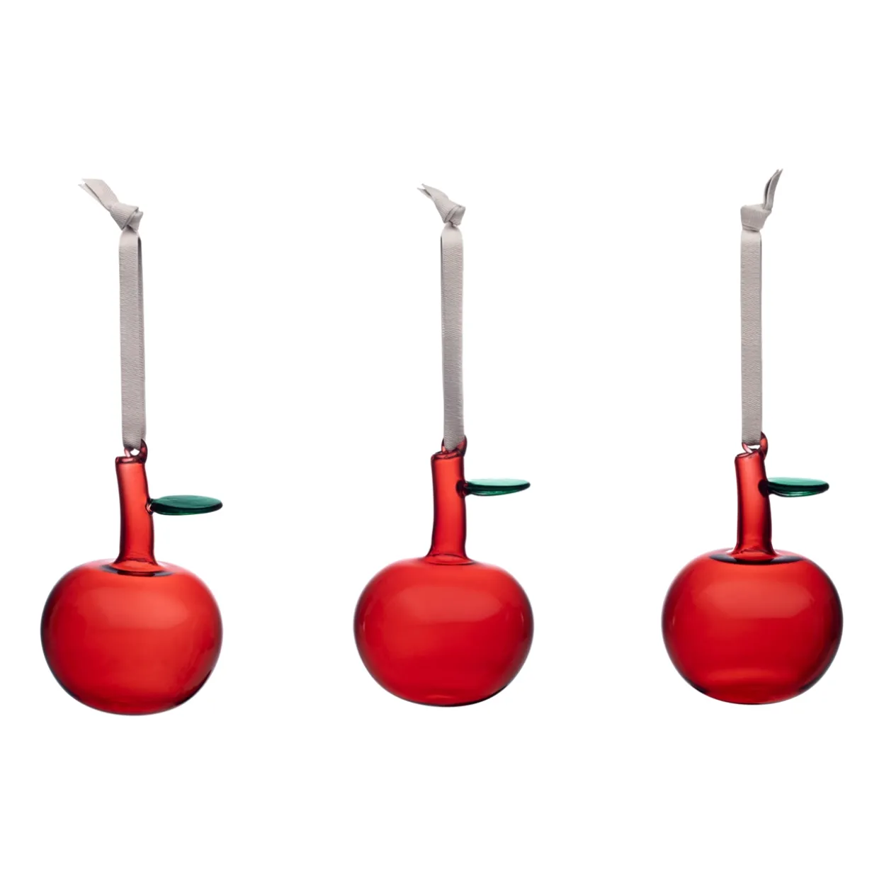 Oiva Toikan muotoilemat syvänpunaiset lasiomenat tuovat iloista ja modernia tyyliä joulukoristeluun. Suomalaisista jouluperinteistä innoituksensa saaneet lasiomenat sopivat kauniisti yhteen Iittalan muiden joulukoristeiden kanssa ja ovat monikäyttöinen lisä joulukoristeluun. Jokainen omena on tehty käsityönä. Niitä myydään kolmen kappaleen pakkauksissa, ja ne sopivat täydellisesti näyttävän kokonaisuuden luomiseen.