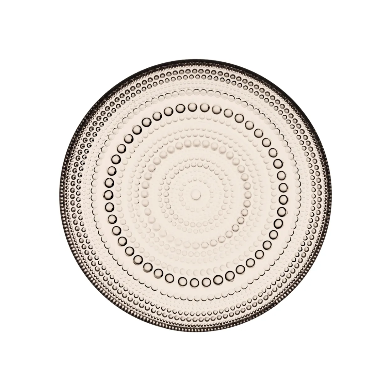 Kastehelmi-sarjan ainutlaatuinen pisaramainen pintarakenne syntyi muotoilija Oiva Toikan halutessa peittää puristelasiin jäävät saumakohdat. Kastehelmi-sarjan pintastruktuurin loistavat lasihelmirivit muistuttavat aamuauringossa kimaltavaa kastetta. Rakastettuun Kastehelmi-sarjaan kuuluu erikokoisia käytännöllisiä ja koristeellisia lasiastioita. Yksilöllisten ja monikäyttöisten lasien pintarakenteen lasipisarat heijastavat kauniisti valoa. Kastehelmi-lautanen soveltuu kattaukseen alkupalojen, jälkiruuan tai pikkupurtavien tarjoiluastiaksi. Uusi pellavan sävy tuo kaikkiin kattauksiin luonnonmukaisuutta. Herkän kaunis ja kestävä kattausastia.