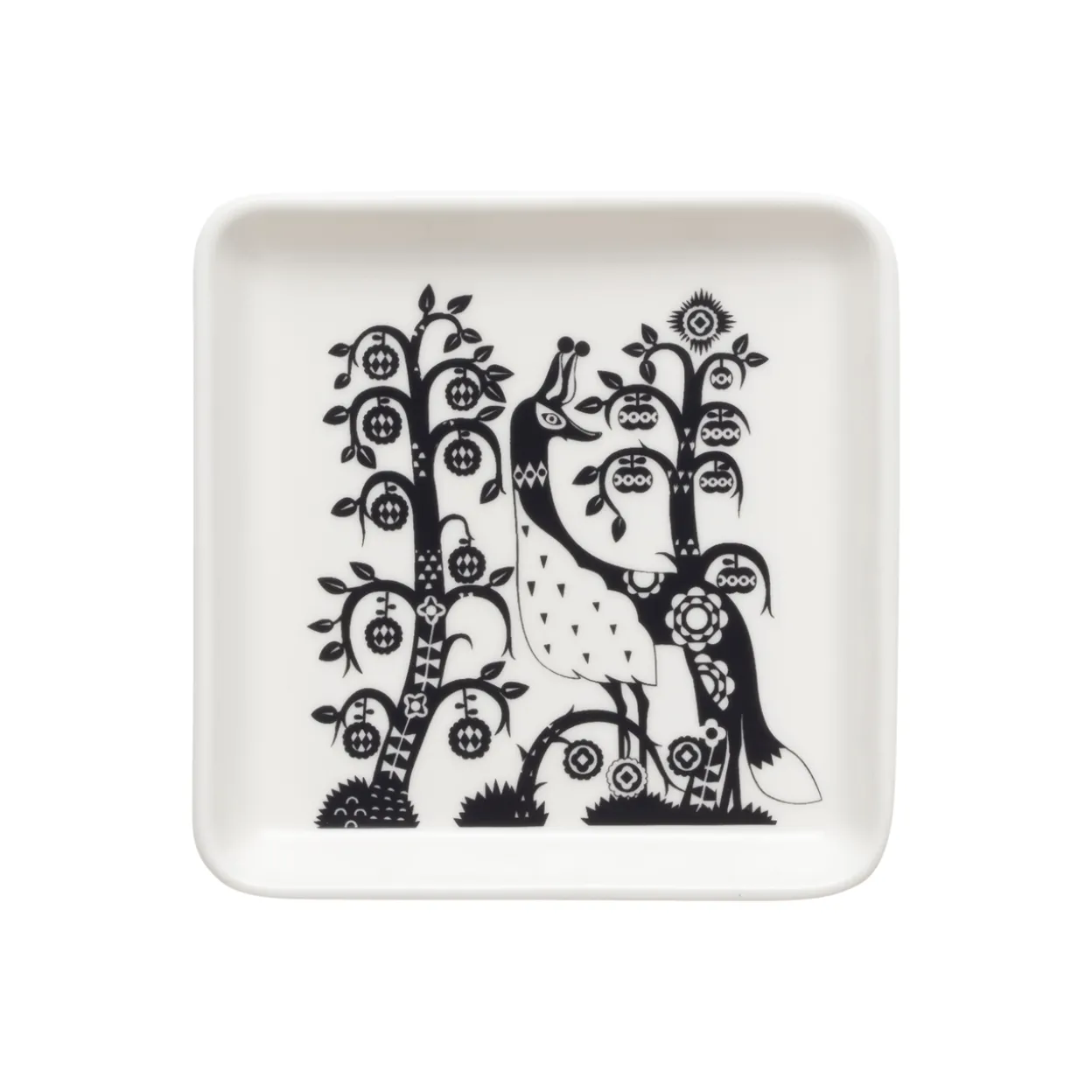 Klaus Haapaniemen taide yhdistyy Heikki Orvolan suunnitteluun luoden pöytään ripauksen taikaa. Tämä neliönmuotoinen 12×12 cm:n lautanen on sekä käytännöllinen että koristeellinen, täydellinen valinta pienten alkupalojen ja herkkujen tarjoiluun sekä esillepanoon. Monipuolisuutensa ansiosta se tuo viehätystä myös sisustukseen ja soveltuu mainiosti esimerkiksi korujen säilytykseen.