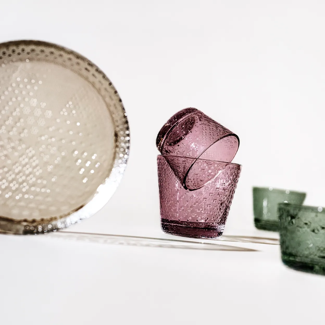 Oiva Toikan vuonna 1970 suunnittelema Tundra-lasikokoelma on hienostunut, nostalginen ja samaan aikaan moderni. Tundra-kuvio koostuu tarkemmin katsottuna useista pienemmistä kuvioista, jotka ovat saaneet inspiraationsa pohjoisen karusta arktisesta luonnosta. Pieni Tundra-juomalasi hurmaa koollaan ja tuo kiinnostavuutta kattaukseen. Kaunis uusi kanervan sävy korostaa lasin hienovaraista kuviointia. Olipa sitten kyseessä mehu, vesi tai drinkki, 16 cl:n tundra tekee juomasta erityisen herkullisen. Kahden kappaleen pakkauksissa myytävät Tundra-juomalasit on valmistettu Suomessa Iittalan lasitehtaalla.
