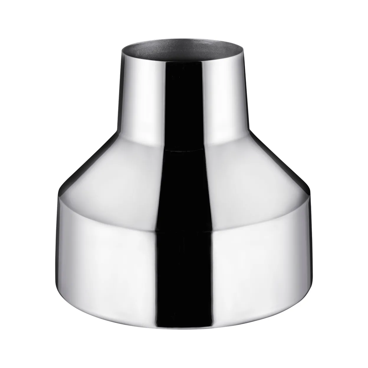 Veistoksellinen ja kauniisti valoa heijastava teräksinen Solare-maljakko tekee hiljaisen mutta vahvan vaikutuksen. Sen sileä, peilimäinen pinta leikittelee valolla ja luo syvyyttä tilaan. Leveä siluetti tuo tasapainoa runsaille kukka-asetelmille tai toimii yksinään graafisena sisustuselementtinä.