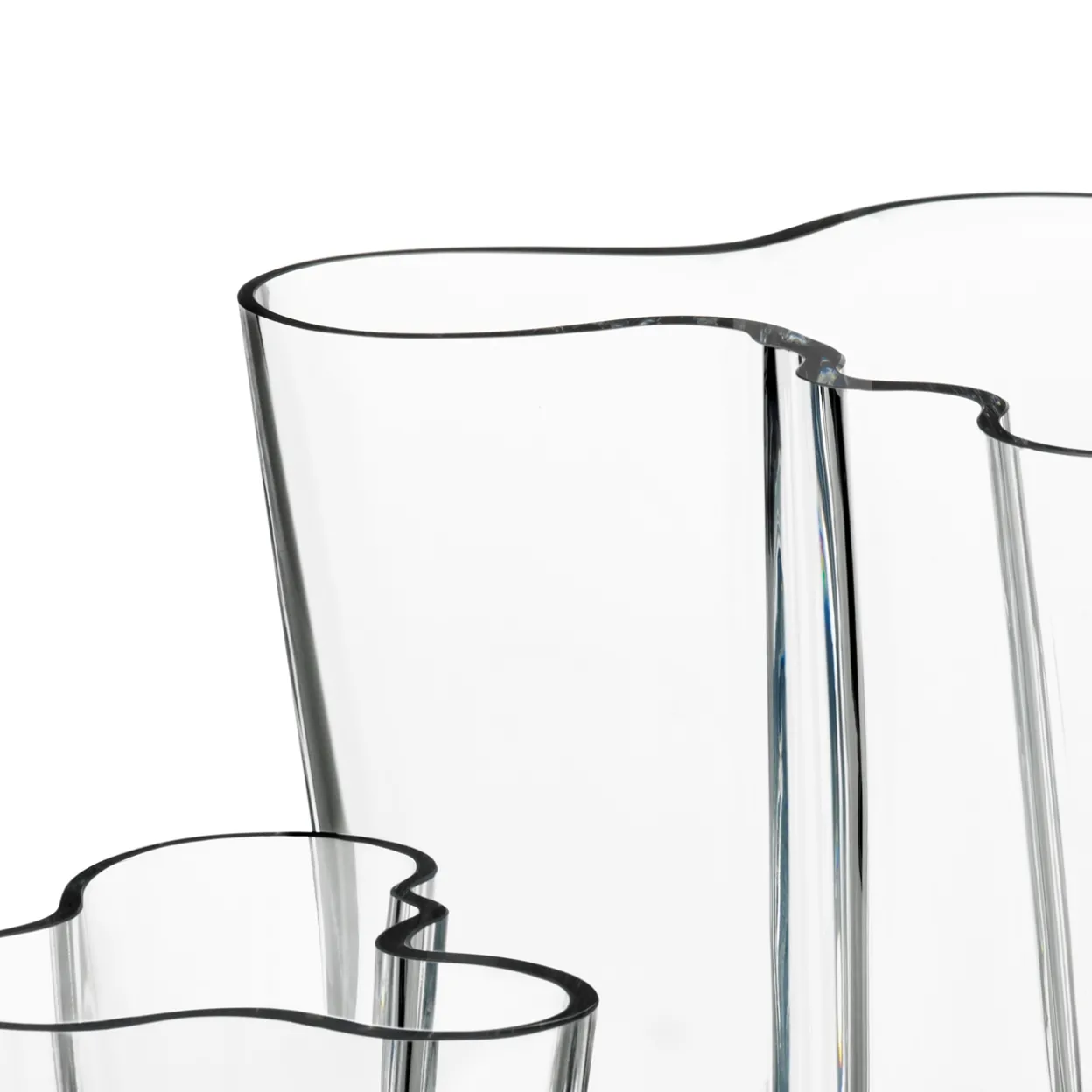 Alvar Aallon luoma epäsymmetrisesti aaltoileva muotoilu sai kansainvälistä huomiota vuoden 1937 Pariisin maailmannäyttelyssä, minkä jälkeen siitä on tullut yksi modernin pohjoismaisen muotoilun klassikoista. Suomalaisen luonnon vaikutus näkyy Aallon suunnittelemissa ajattomissa klassikkoesineissä, joissa yhdistyy funktionaalisuus ja veistoksellinen muoto. Jokainen maljakko valmistetaan yksittäin Iittalan lasitehtaalla suupuhaltamalla, katkaistaan lasimassasta käsin ja hiotaan lopulliseen muotoonsa. Aalto-maljakkosarjan korkeassa maljakossa pitkävartiset kukat pääsevät oikeuksiinsa, ja pieni maljakko sopii täydellisesti matalille kukka-asetelmille. Monikäyttöinen kirkas lasi sopii jokaiseen sisustustyyliin. Se on lahja, joka muistetaan. Konepesun kestävä.