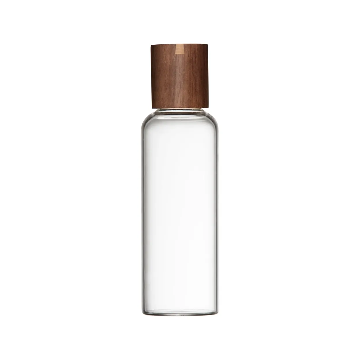 Kestävästä borosilikaattilasista valmistettu pullo on helppo täyttää ja kantaa. Saksanpähkinästä valmistetussa korkissa on erityinen pyrstöliitos, joka antaa pullolle laadukkaan tunnun. Vain käsinpesu.